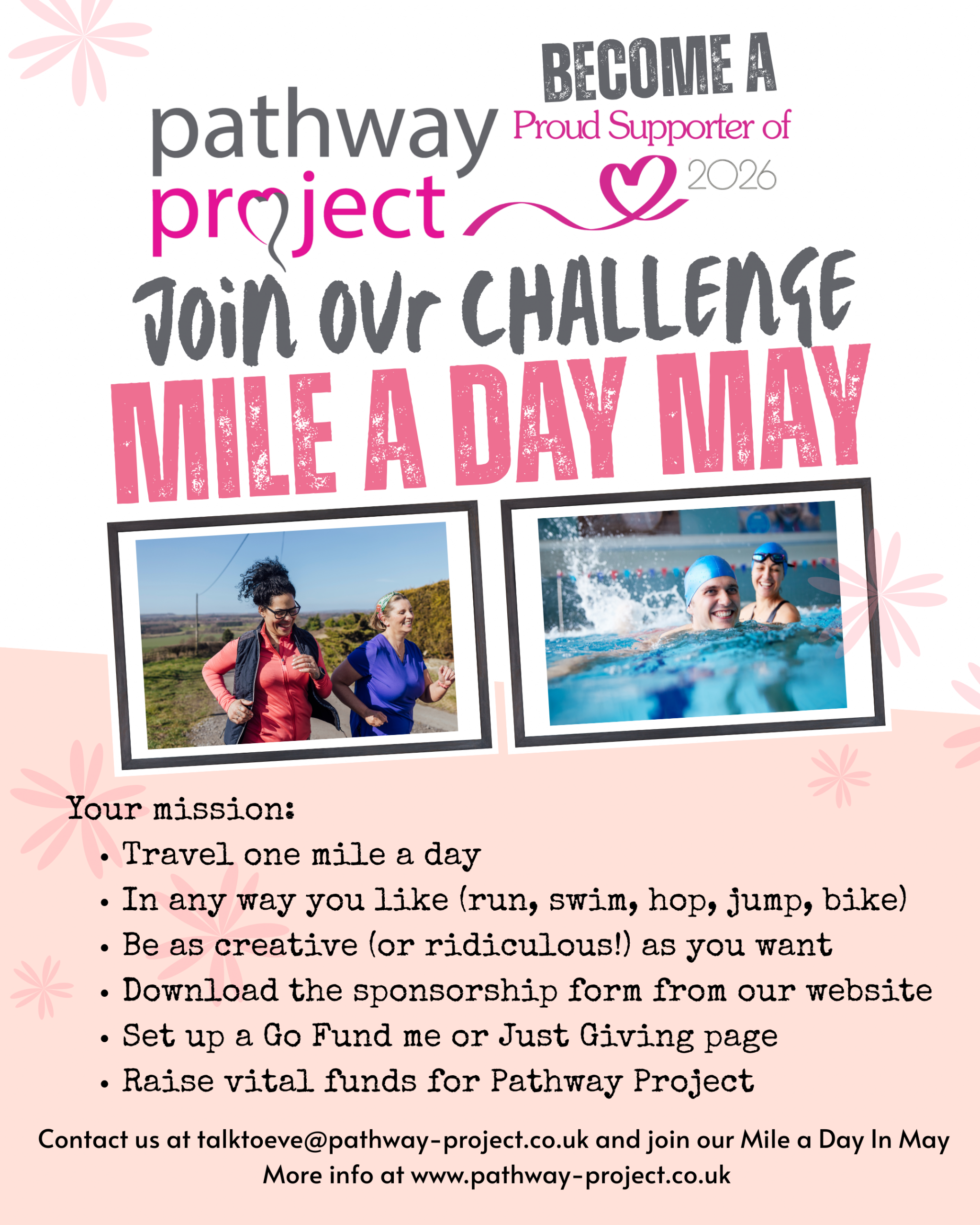 Put a post on Instagram or Facebook saying you’re joining Mile a Day in May and tag @PathwayProject so we can see it and celebrate you.